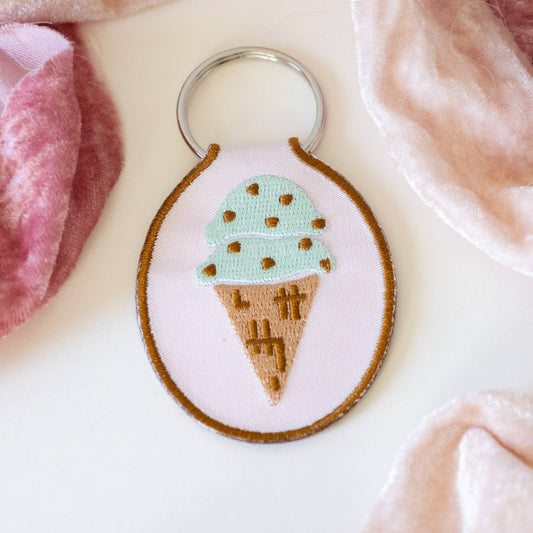 Ice Cream Cone Embroidered Patch Keychain