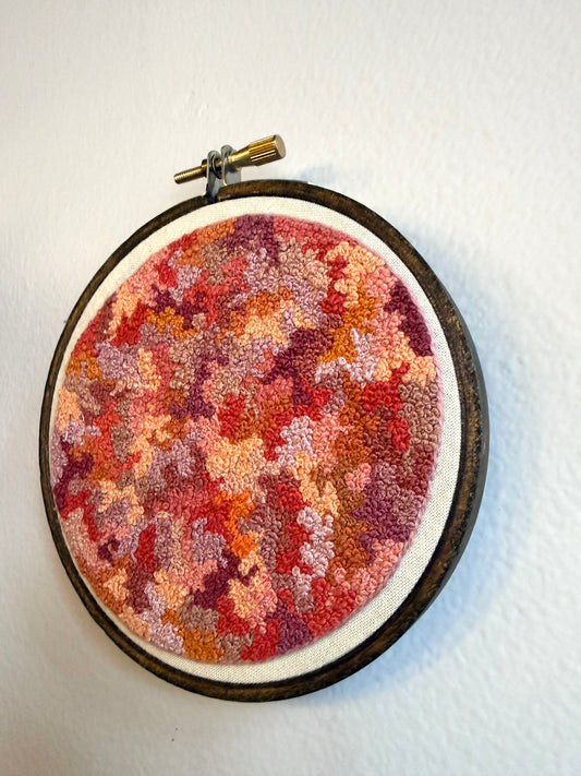 French Knot Embroidery Art - Multi Squiggles (4.25" Diameter)