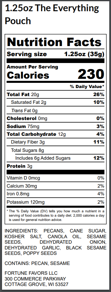 Our Everything seasoned candied pecans are made using the same outstanding pecans and method as our Classic, but with our special blend of poppy and sesame seeds, garlic, and onion to create a unique sweet and savory flavor. Itβs like an Everything bagel with fewer carbs!