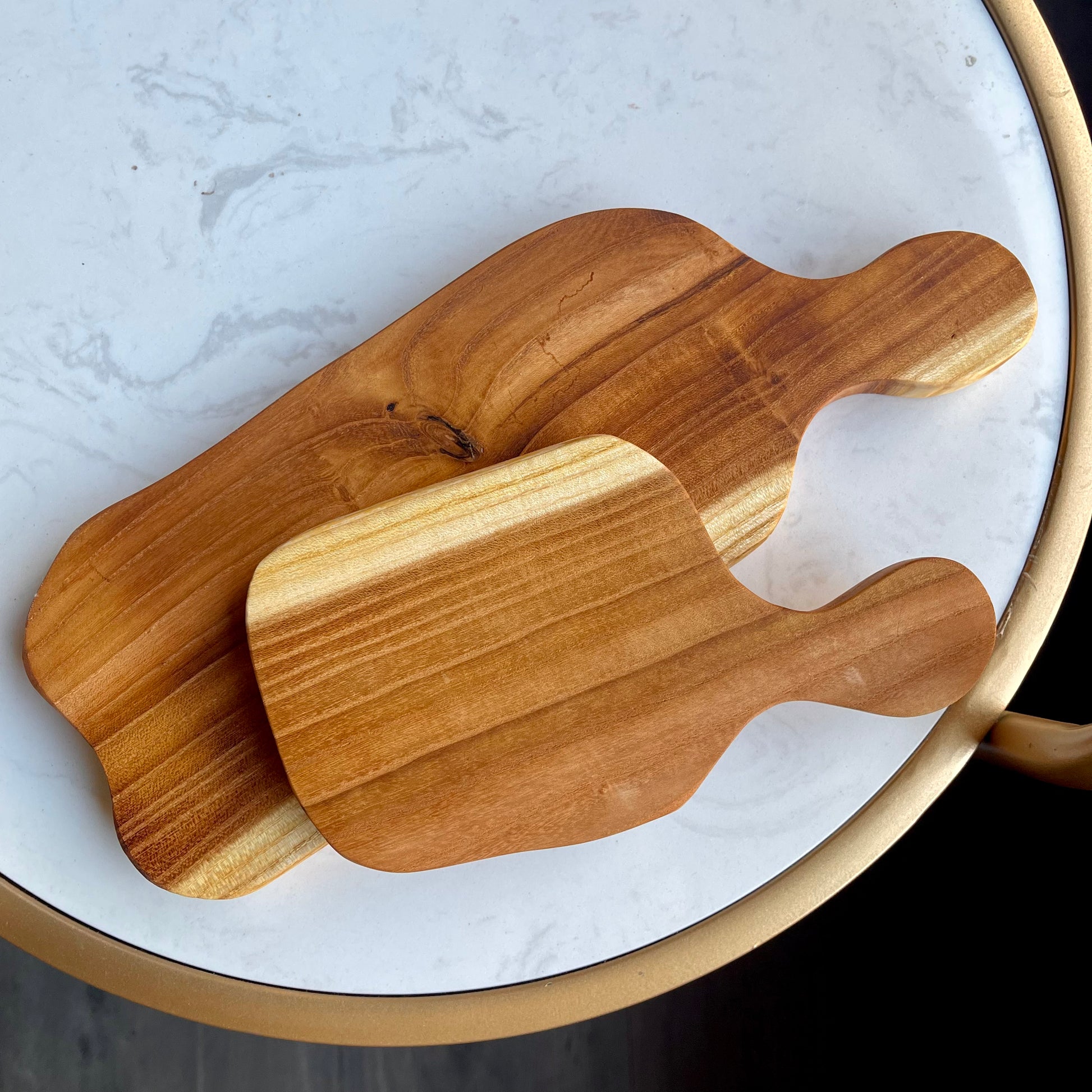 This "medium" size is perfect for a cheery little spread. Each measures 12"x14" long, including the handle. Please refer to the "board choice" variation for exact dimensions.