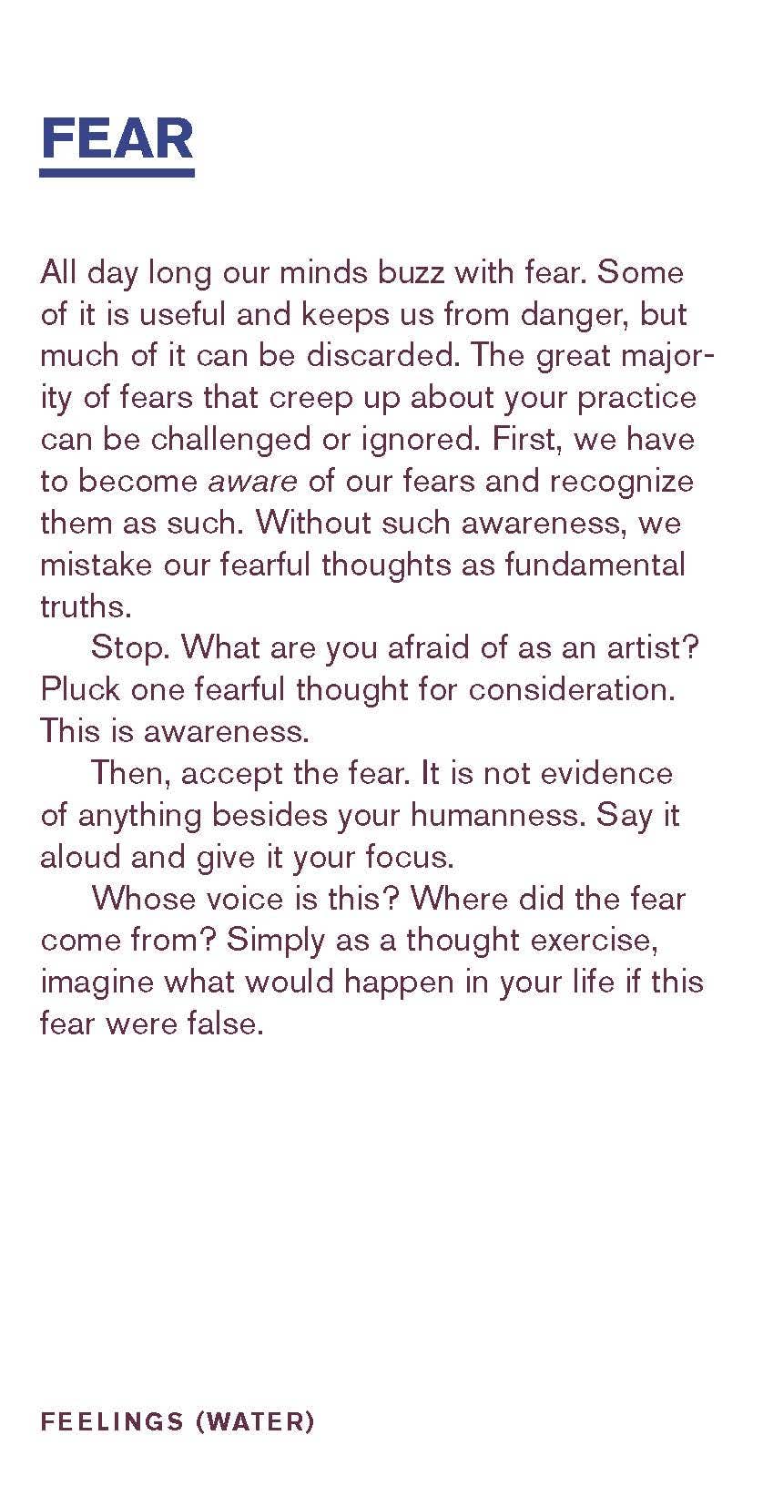 A 52-card deck created by arts counselor and author Beth Pickens to help artists work through common creative blocks. Each card names a trap, myth, or feeling and offers perspective on how to move through it.