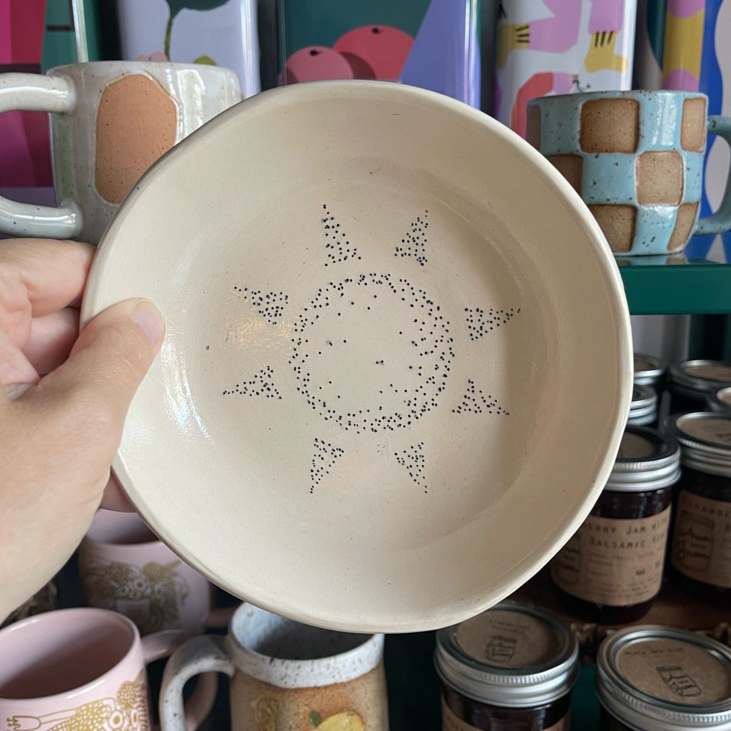 This handmade stoneware piece is designed to be used for kitchen and table and is best hand washed.