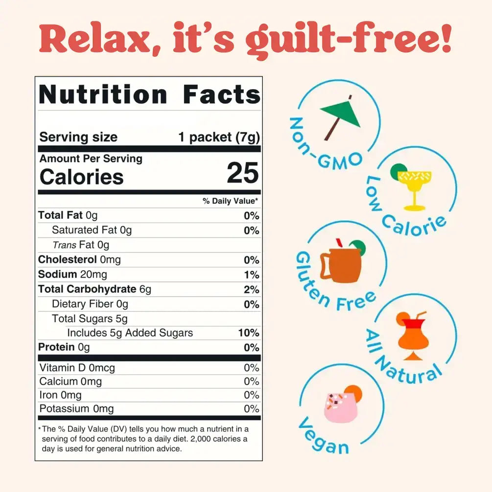 Just add a shot of liquor (vodka recommended) + two shots of sparkling water, pour over ice, and you've got a cocktail anytime, anywhere! Can also be prepared without the liquor for a mocktail.
