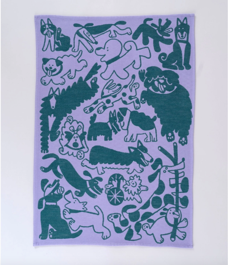 Dogs Day Out Tea Towel in Lilac/Green