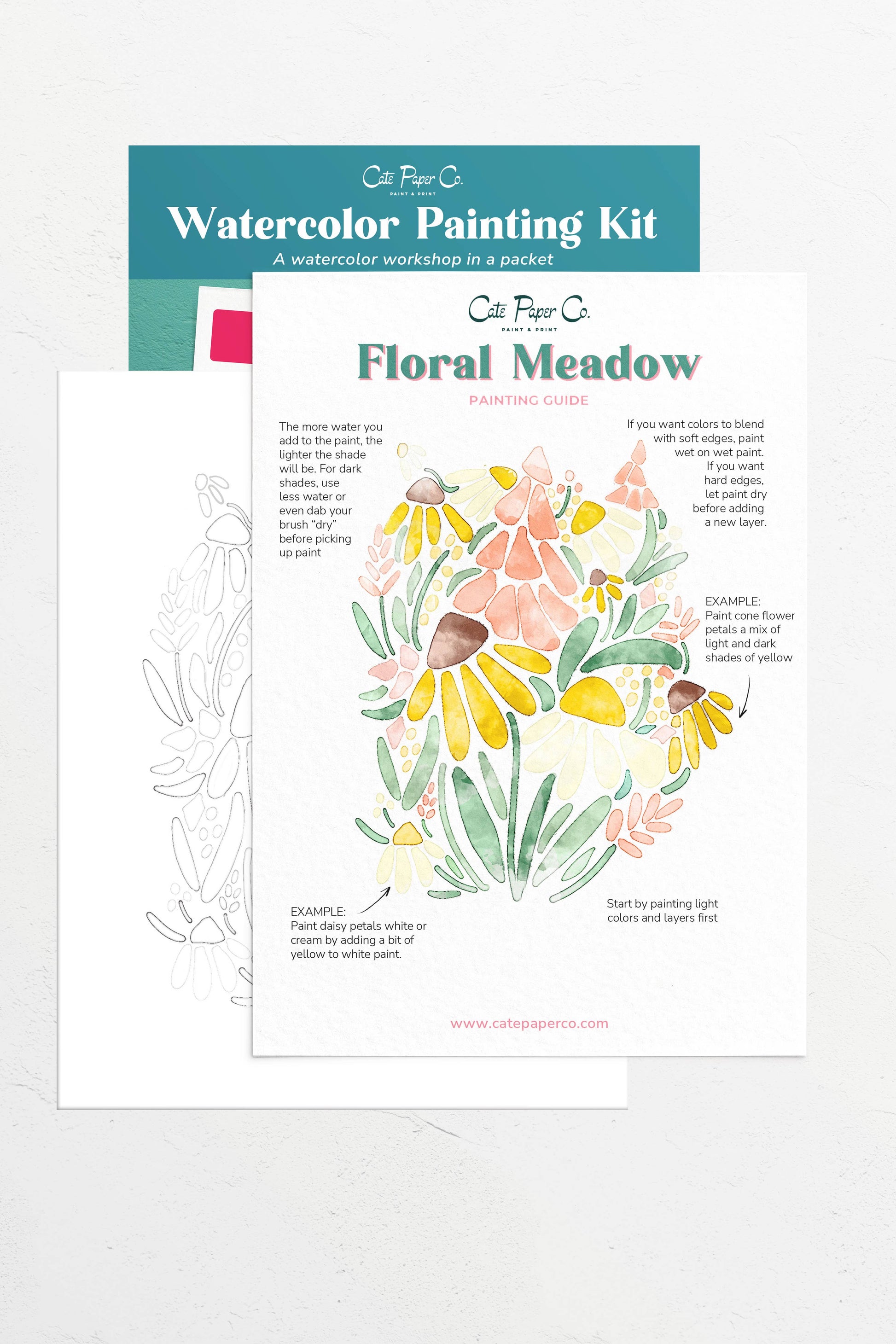 Paint your own watercolor floral meadow with this travel-friendly kit. Everything comes in a compact packet; just add water to the included water brush, and you can paint anywhere! No prior experience necessary, beginner friendly.