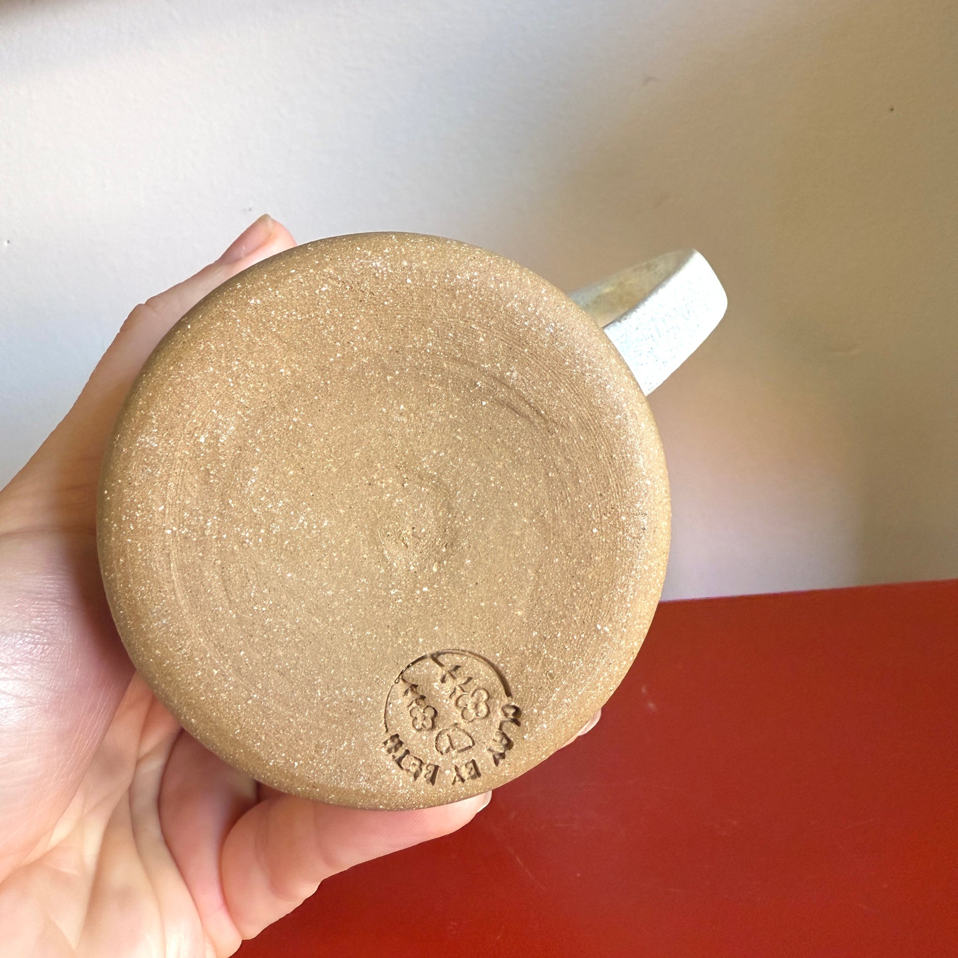 This hand-thrown mug has a tall, slim body - perfect for holding with one hand.