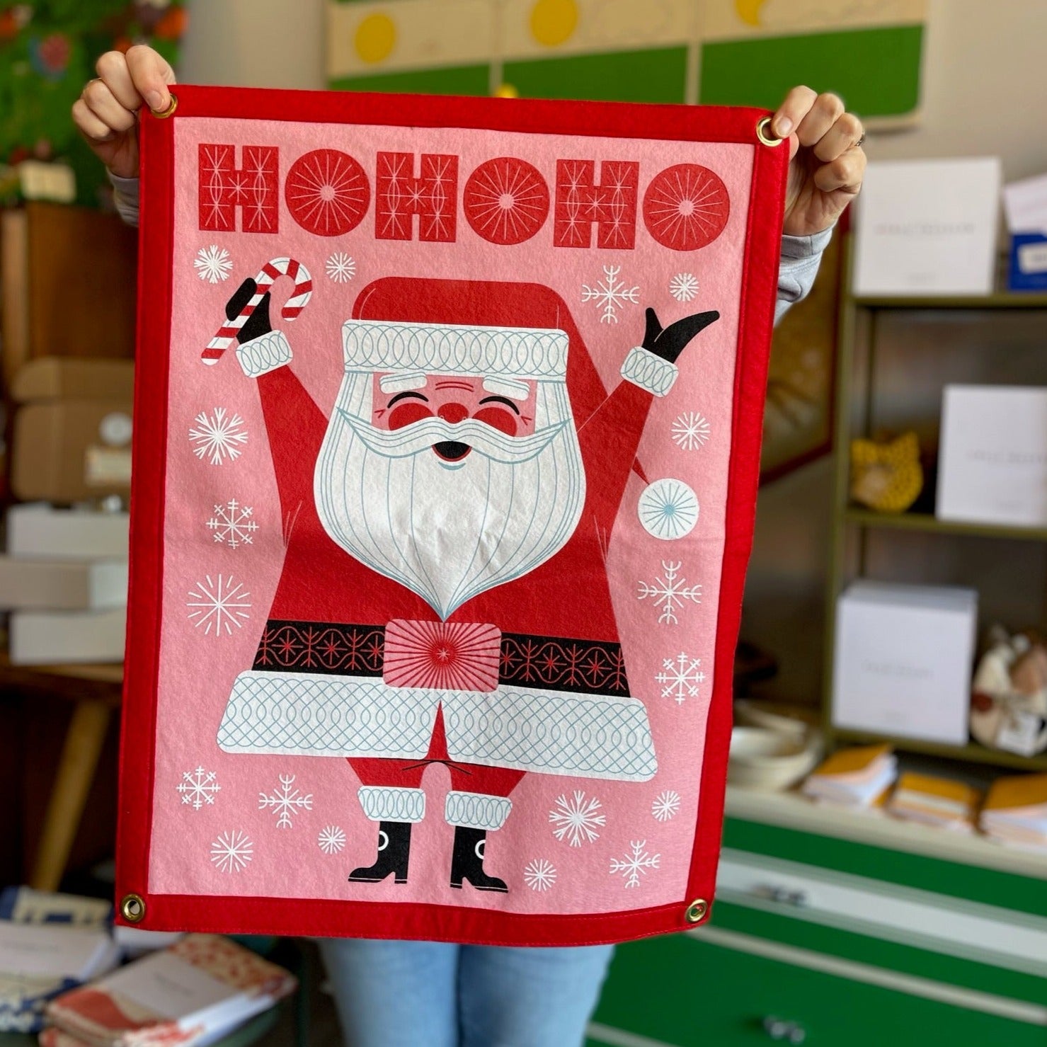 Deck your halls this year with a beautiful camp flag featuring Santa and his famous slogan—designed by Invisible Creature