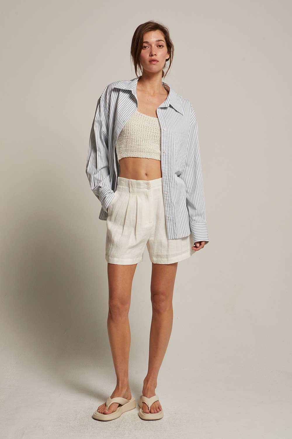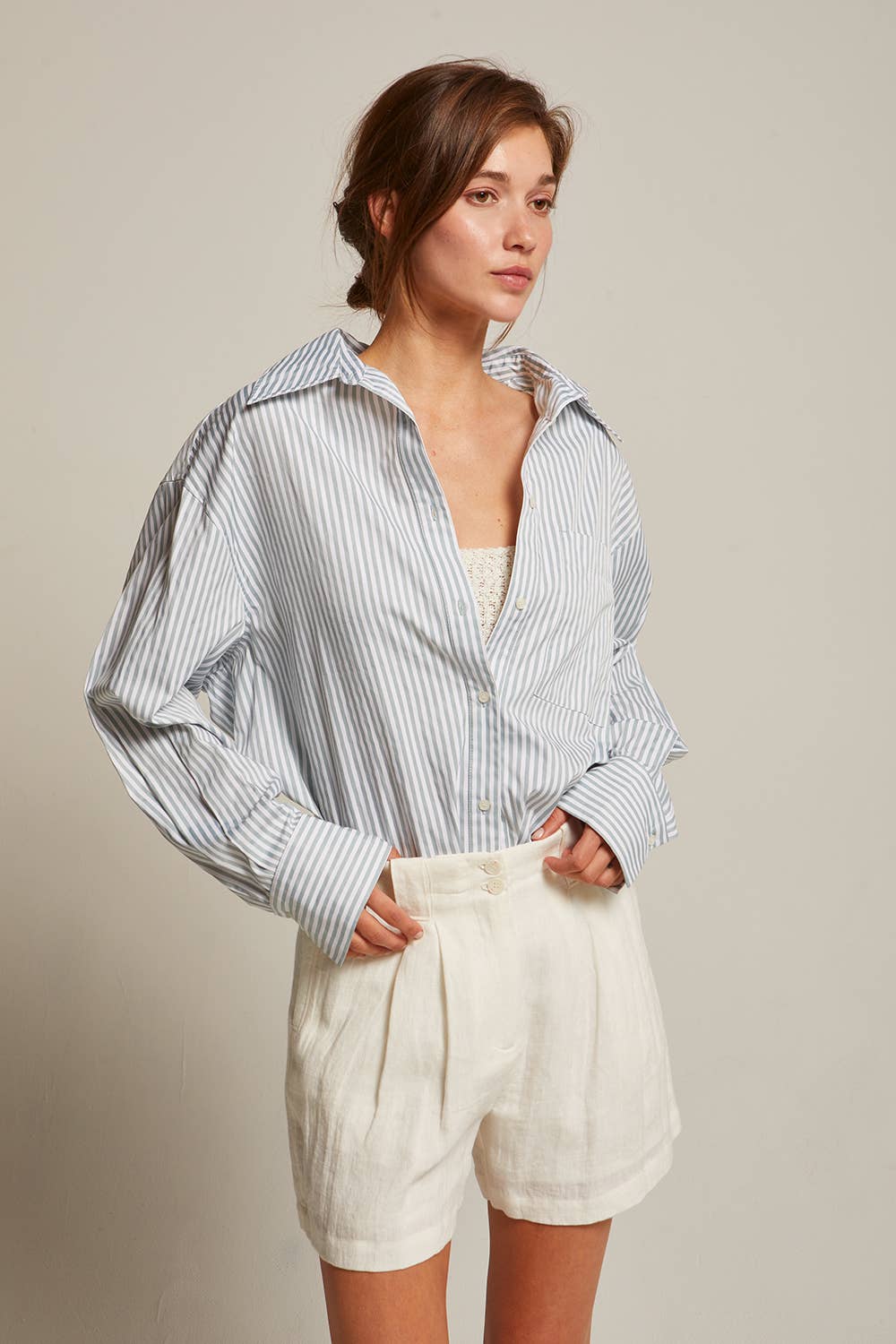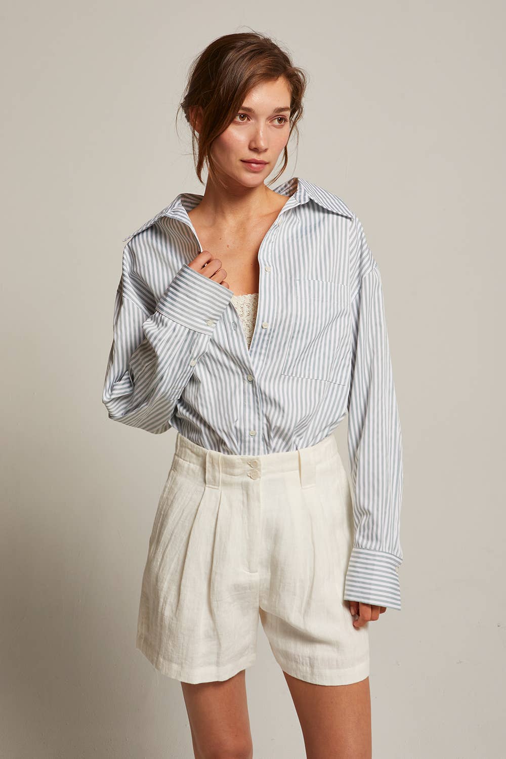 Stripes are officially the look of the summer! These shirts look great by themselves, but I especially love throwing them over a tank and shorts, sundress, or a swimsuit as an effortless top layer.