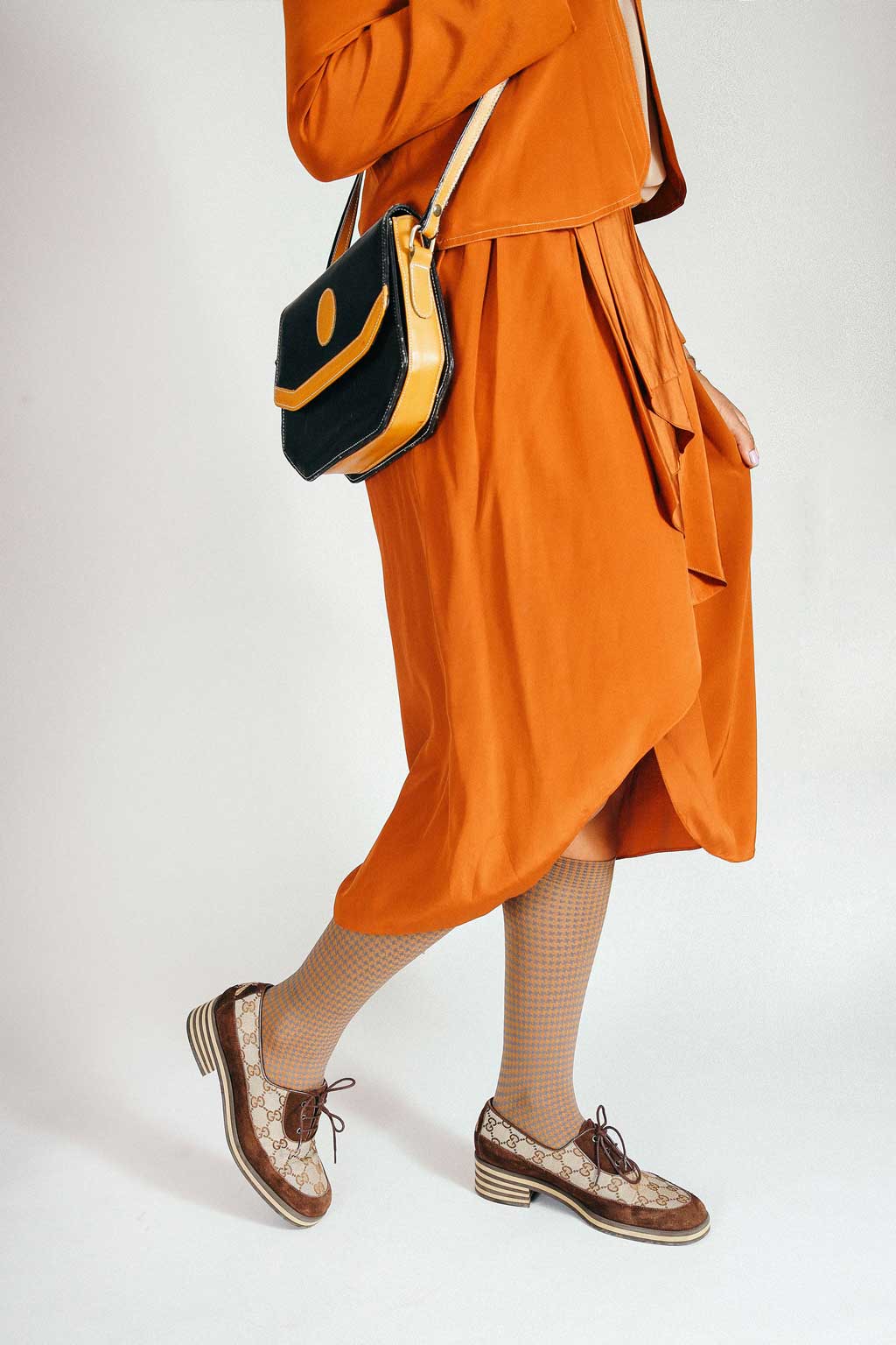 These silky, houndstooth pattern socks can be stretched up the calf or scrunched down to the ankle for a more casual look.