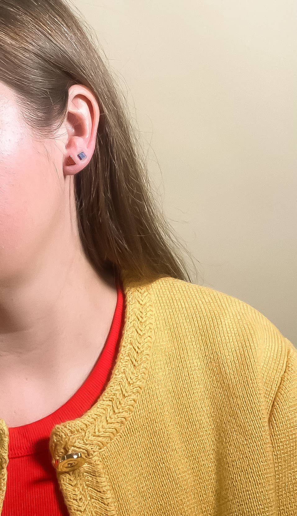 These petite studs by Michelle Starbuck (Chicago) are a perfect everyday earring you never have to take off. The deep navy sodalite stones look good with everything!