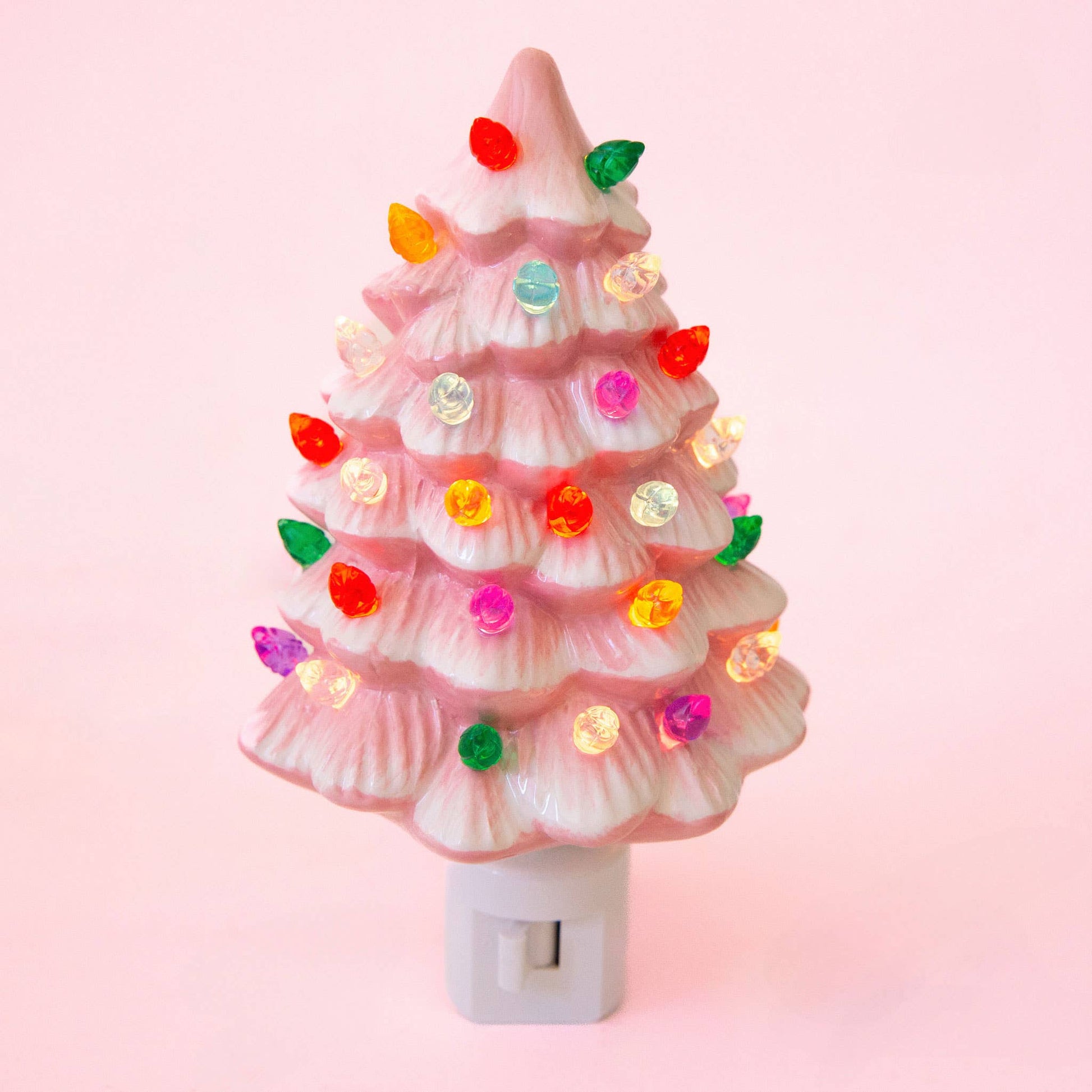 Vintage Ceramic Christmas Tree Night Light | Retro Pink