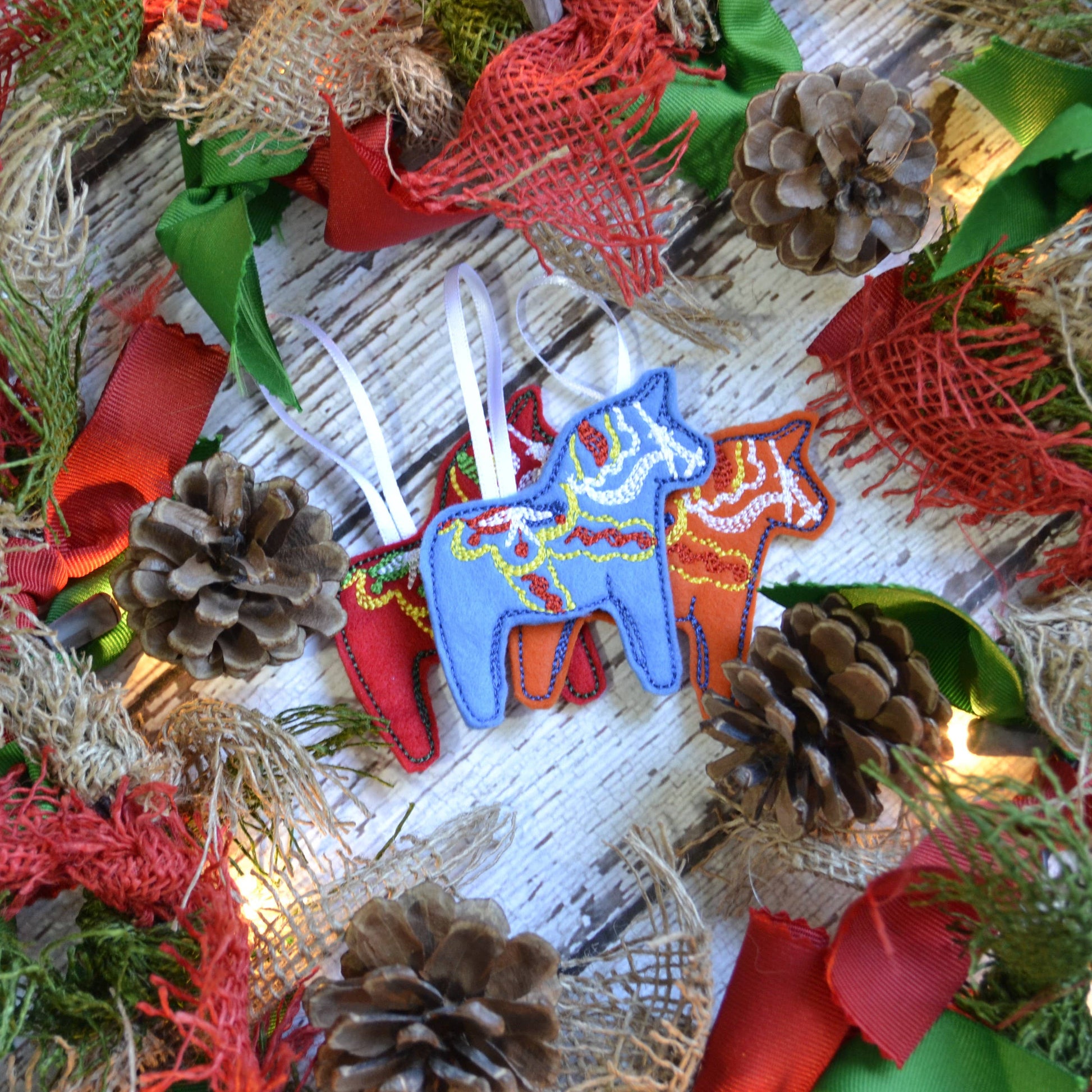 Scandinavian Dala Horse Embroidered Felt Holiday Ornament