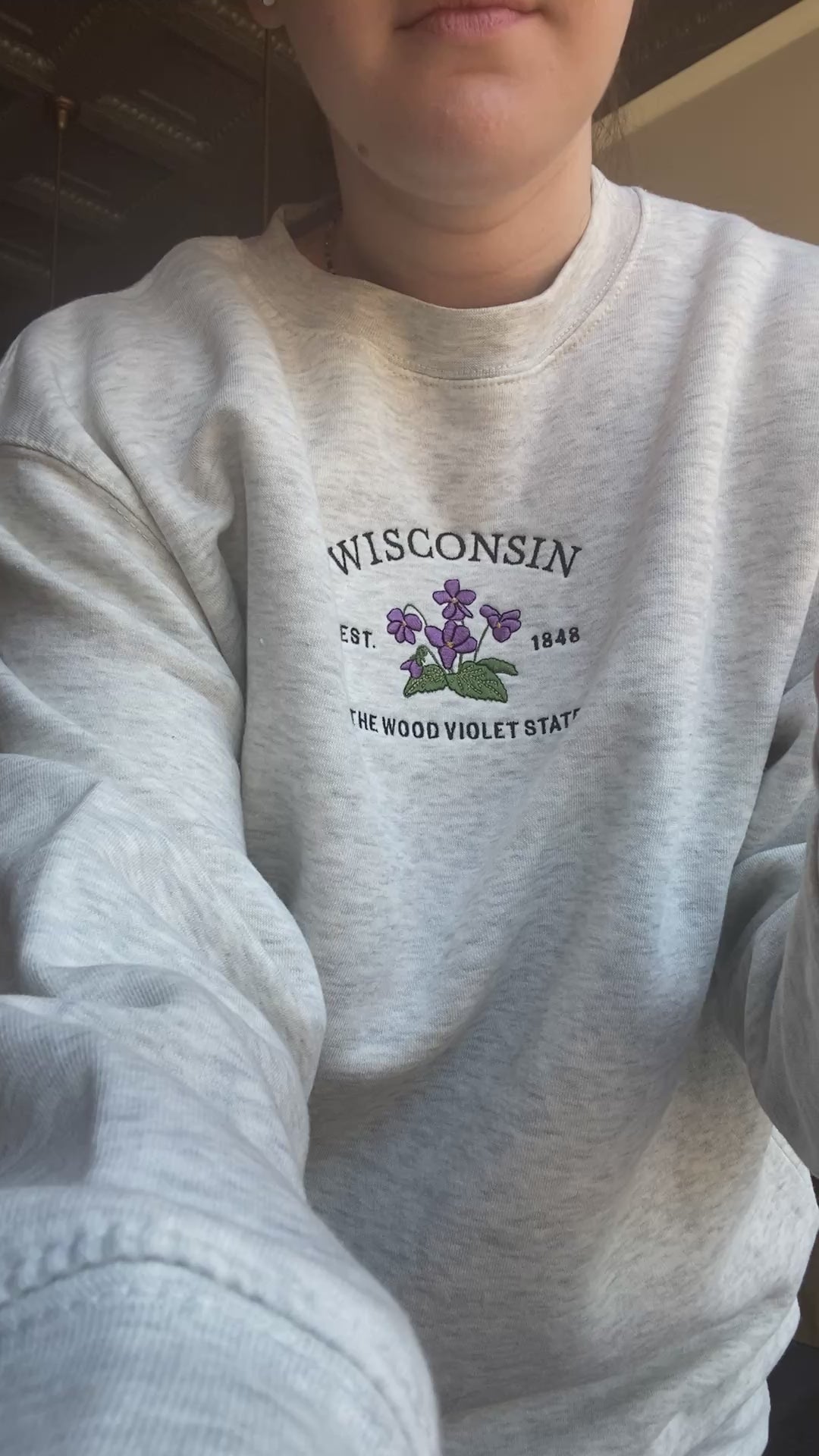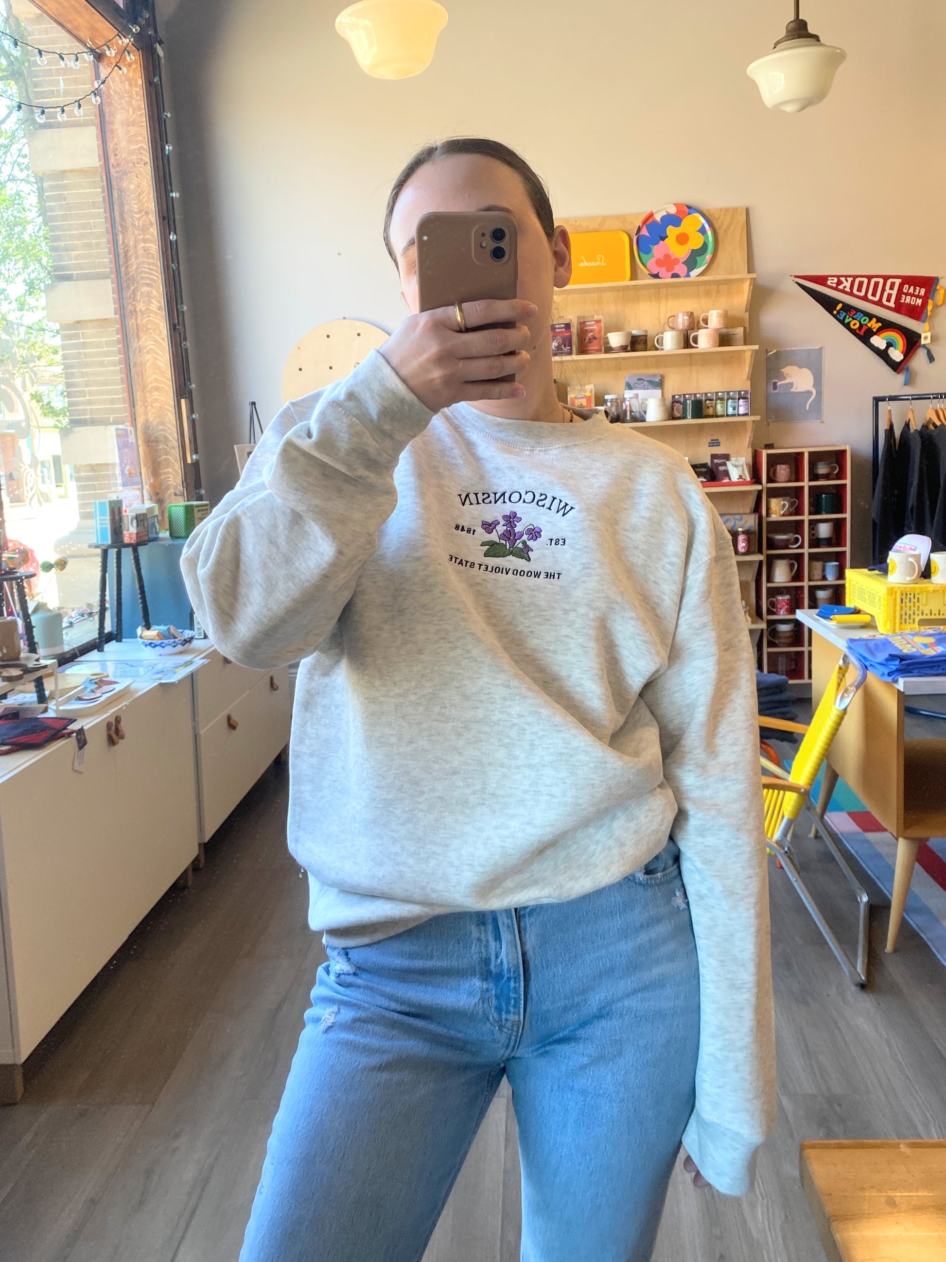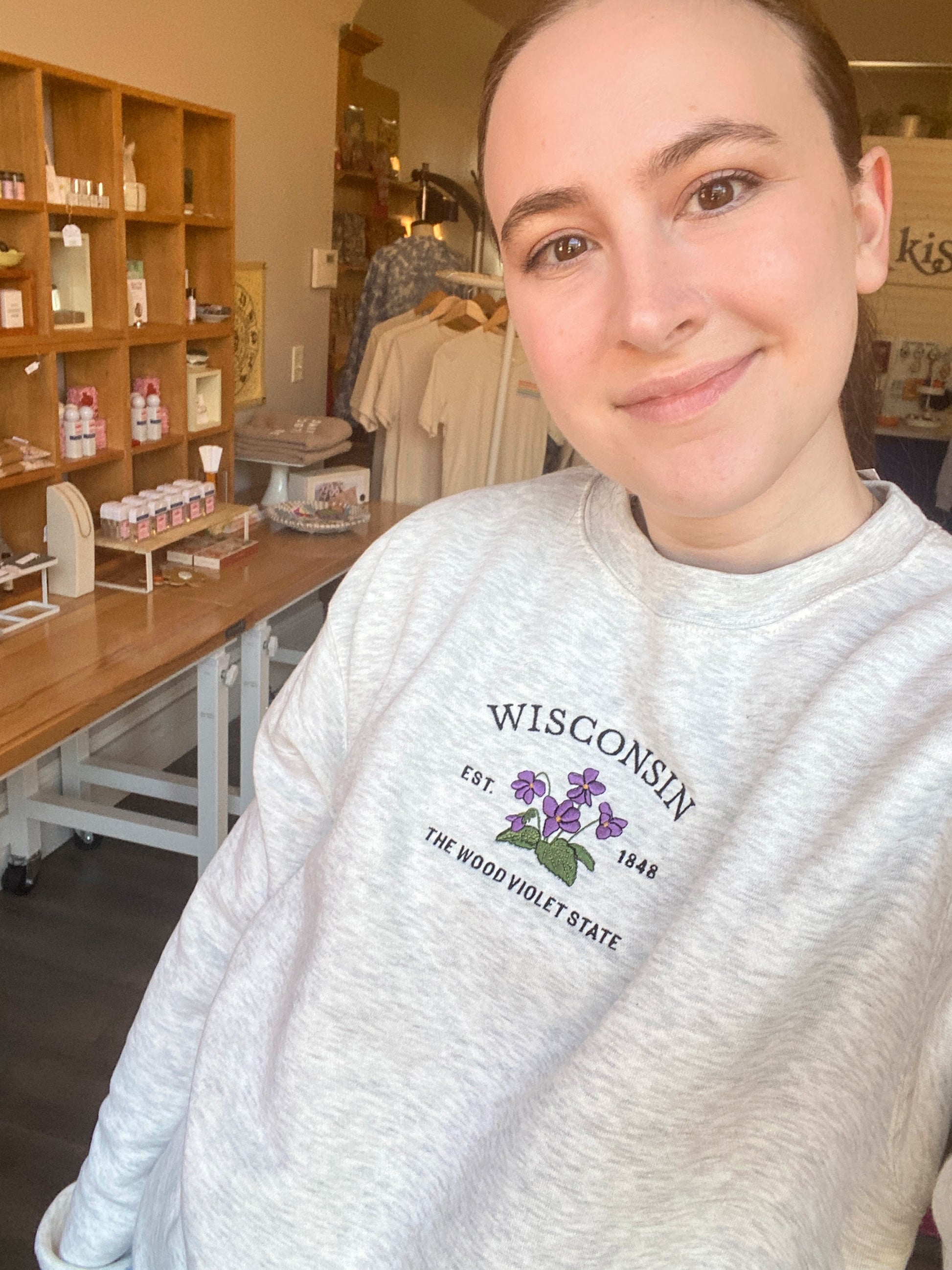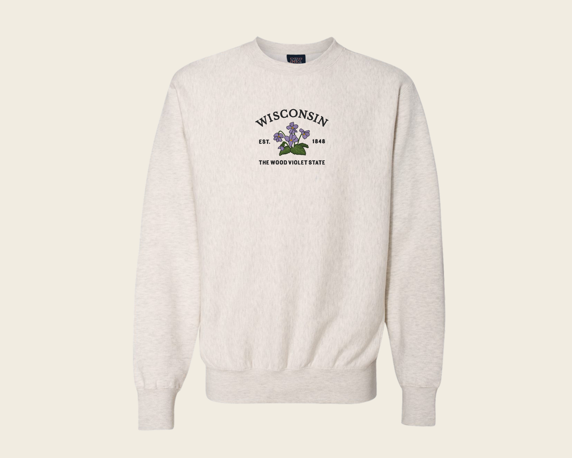 Inspired by springtime in Wisconsin, this sweatshirt features embroidered wood violets to showcase the state flower's delicate beauty. In oatmeal heather, it goes with everything and is bound to be your next favorite!